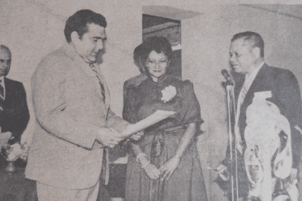 Malena Recinos recibe un reconocimiento de la Asociación de Periodistas de El Salvador (APES). Recinos ejerció el periodismo en el periódico La Prensa Gráfica.