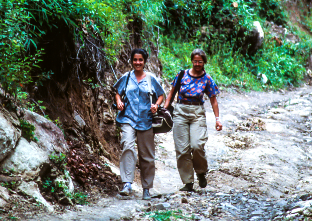 A la izquierda, Cindy Karp, periodista visual independiente que trabajó para la revista TIME. A la derecha, la periodista italiana Cecilia Gosso, en una zona de conflicto, en agosto de 1985. Fotografía cortesía de Giovanni Palazzo.